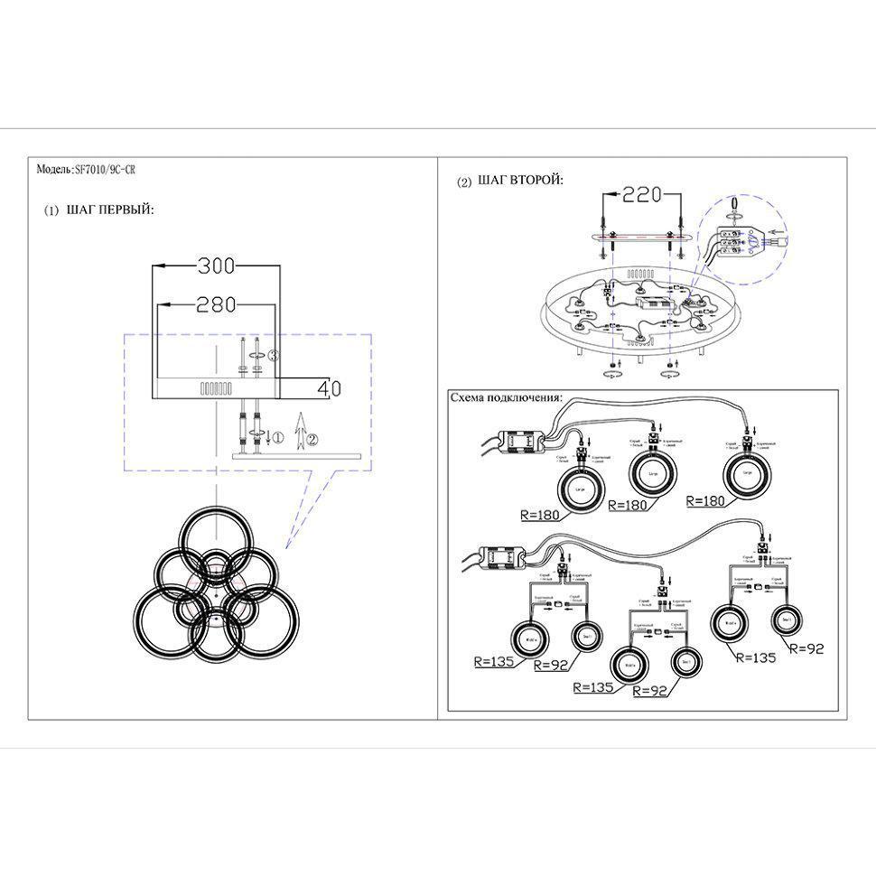 Семь Огней создает продукт от эскиза до готового шедевра. Над созданием светильников трудятся одни из лучших дизайнеров и конструкторов. Наша компания предъявляет высокие требования к производимой продукции, что подтверждено сертификатами качества.ПРЕИМУЩЕСТВАСовременный дизайнИзменение освещения: «теплый» свет (3000К), «дневной» свет (4500К), «холодный» свет (6000К)Управление функциями с помощью пульта ДУ или с помощью выключателяКонструктивное исполнение и материалы предотвращают перегрев и обеспечивают длительный срок службыПРИМЕНЕНИЕСветильник предназначен для основного освещения помещенийПодойдет в гостиную, зал, спальню, кухнюКОНСТРУКЦИЯ И МАТЕРИАЛЫСветильник изготовлен из высококачественных материалов и является безопасным для человека, животных и окружающей средыИспользуемые материалы: металл, акрилИсточник света- светодиоды Крепление- накладным способом с помощью шуруповКрепеж подойдет под все виды потолков: бетон, гипсокартон, натяжные и деревянные потолки.