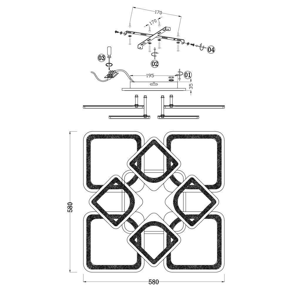 Семь Огней создает продукт от эскиза до готового шедевра. Над созданием светильников трудятся одни из лучших дизайнеров и конструкторов. Наша компания предъявляет высокие требования к производимой продукции, что подтверждено сертификатами качества.ПРЕИМУЩЕСТВАСовременный дизайнИзменение освещения: «теплый» свет (3000К), «дневной» свет (4500К), «холодный» свет (6000К)Управление функциями с помощью пульта ДУ или с помощью выключателяПоддержка технологии умного домаПульт ДУ с памятьюДлительный срок службы светильникаПРИМЕНЕНИЕПредназначен для основного освещения помещенийПодойдет в гостиную, зал, спальню, прихожуюКОНСТРУКЦИЯ И МАТЕРИАЛЫСветильник изготовлен из высококачественных материалов и является безопасным для человека, животных и окружающей средыИспользуемые материалы: металл, акрилИсточник света -светодиодыSMD матрица на основанииКрепление -накладным способом с помощью шуруповКрепеж подойдет под все виды потолков: бетон, гипсокартон, натяжные и деревянные потолки.