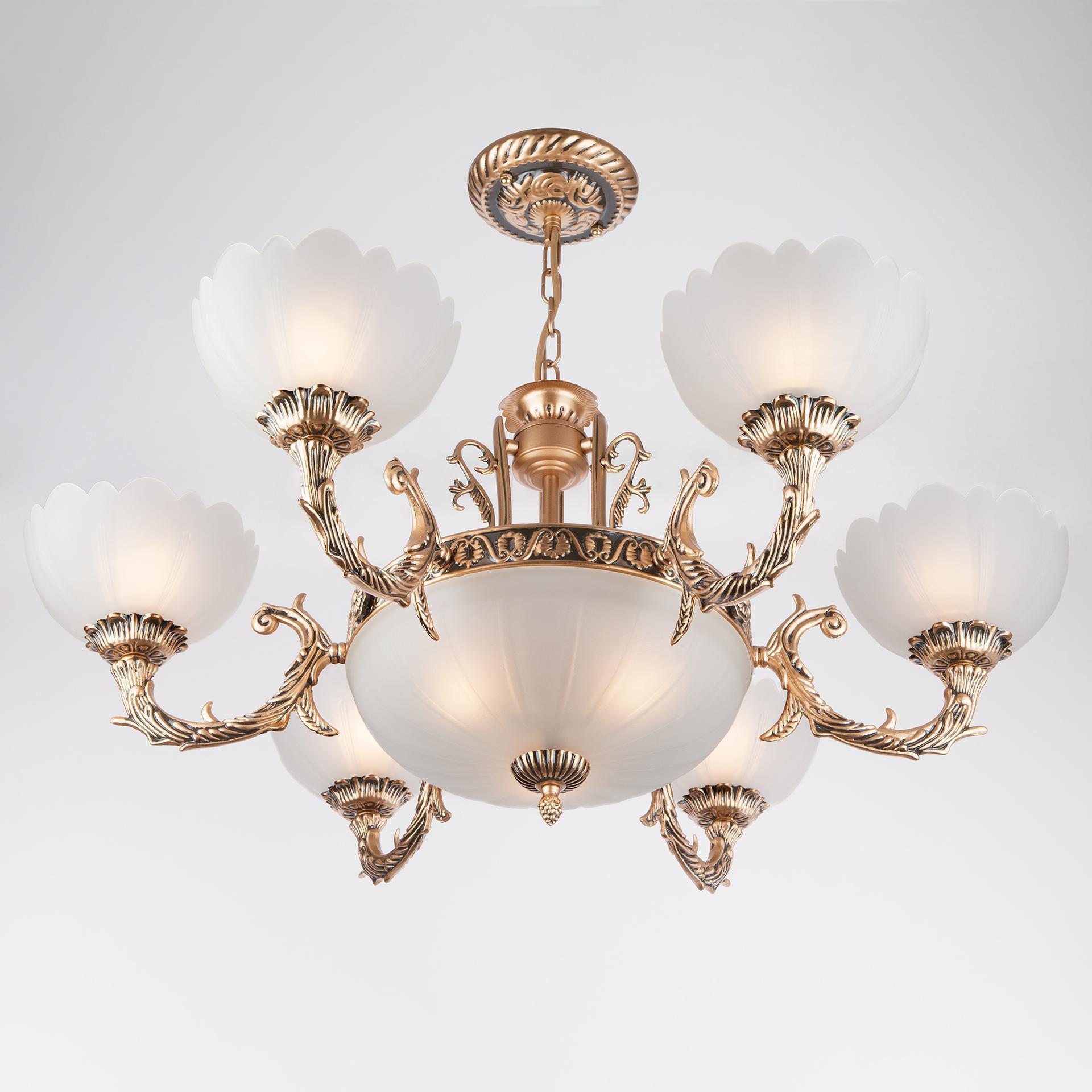Люстра в стиле классика 6051/6+3 античная бронза украсит вашу комнату и создаст качественное основное освещение на площади 43 м². Европейский дизайн в классическом стиле будет уместно смотреться в любом интерьере и подчеркнет утонченность вашего выбора. Классическая люстра оснащена патронами под сменные лампы с цоколем Е27, рассчитанные на максимальную мощность 60 Вт. Люстра украшена эффектными стеклянными плафонами, создающие мягкое рассеянное свечение. В производстве подвесной люстры использовали матовое стекло с выразительным рисунком и высококачественный металл с надежным защитным покрытием. В нашем интернет-магазине вы можете купить подвесную люстру с плафонами по выгодной цене.