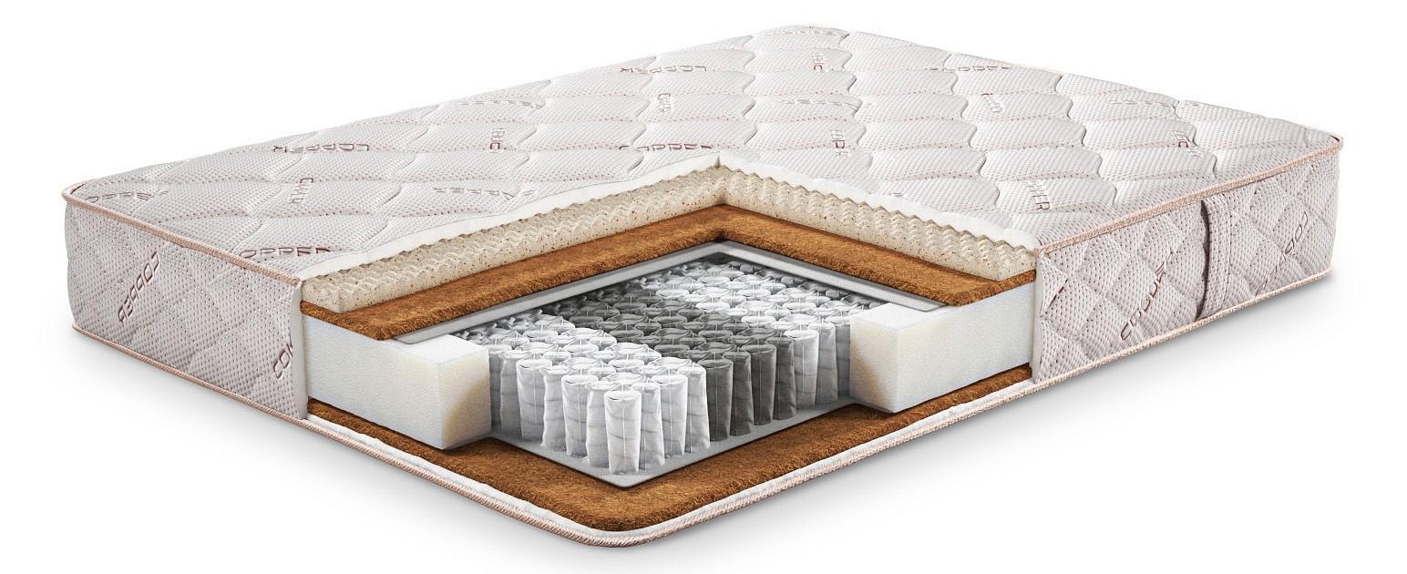 объёмный трикотажный чехол с медной пряжей Copper Double Comfort - нежная трикотажная ткань с медной пряжей CUPRUM в сочетании с двойным слоем сверхмягкого наполнителя, обладает эффектом терморегуляции, снимает мышечное напряжение, служит защитой от бактерий и аллергенов;блок независимых пружин SpringPower 5-zone (540 пружин на спальное место) - «точечно» поддерживает позвоночник в анатомически правильном положении, индивидуально подстраивается под каждую зону тела;инновационная пена с ячеистой резкой c медным гелем CopperGEL® Massage - улучшает анатомические свойства матраса, добавляет микромассажный эффек, капсулы с медным гелем создают противомикробную защиту и легкий охлаждающий эффект;латексированный кокос - равномерно распределяет нагрузку на матрас, повышает его жесткость и прочность;система усиления по периметру MOON EXTRA EDGE – защищает края матраса от провисания, удобно садиться и вставать;высокая максимальная нагрузка 160 кг на 1 спальное место;двусторонний матрас - увеличивает срок эксплуатации.