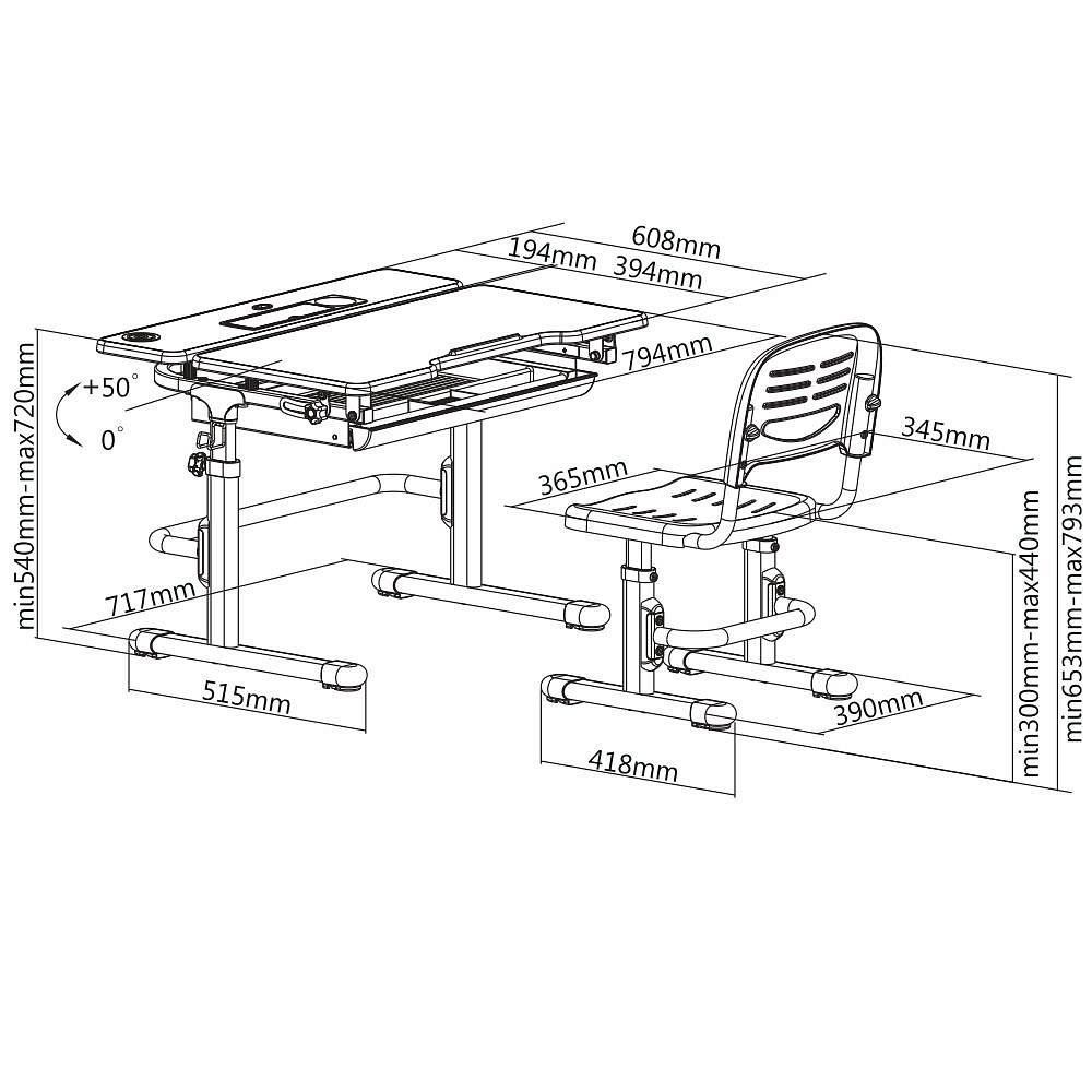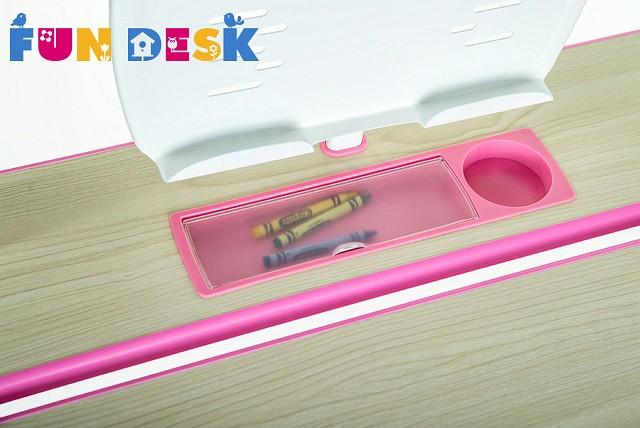 Поверхность учебного стола можно наклонять до 50 ° для удобного письма, чтения и рисования. Наличие специальной защиты от прищемления пальцев позволяет уберечь руки вашего ребенка от повреждений. Под столешницей расположена выдвижная полка с несколькими отделениями, что обеспечивает достаточно места для хранения книг и канцелярских принадлежностей.