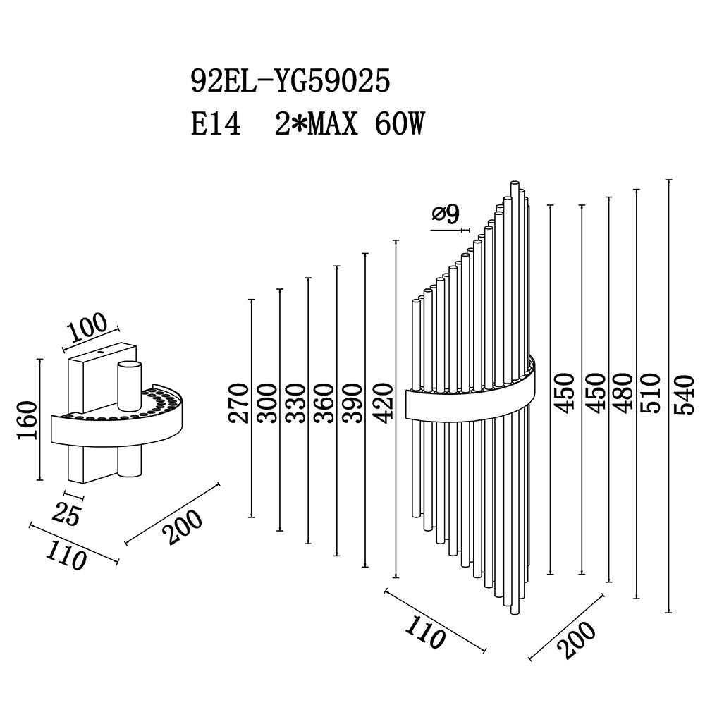 Исключительная модель 92EL-YG59025 компании Garda Decor и отлично подойдет для установки на стену прихожей, оформленной в современном стиле. Настенный светильник Garda Decor 92EL-YG59025 с цилиндрическими плафонами осветит помещение площадью 6 кв. м. Производитель Garda Decor рекомендует использовать для устройства лампы накаливания с цоколем E14 и мощностью 60 W. Прибор произведен с использованием материалов: стекло и металл. Основным цветом товара является латунный. Настенный светильник 92EL-YG59025 продается по цене 10600 руб. Торопитесь сделать заказ в интернет-магазине SvetONe.