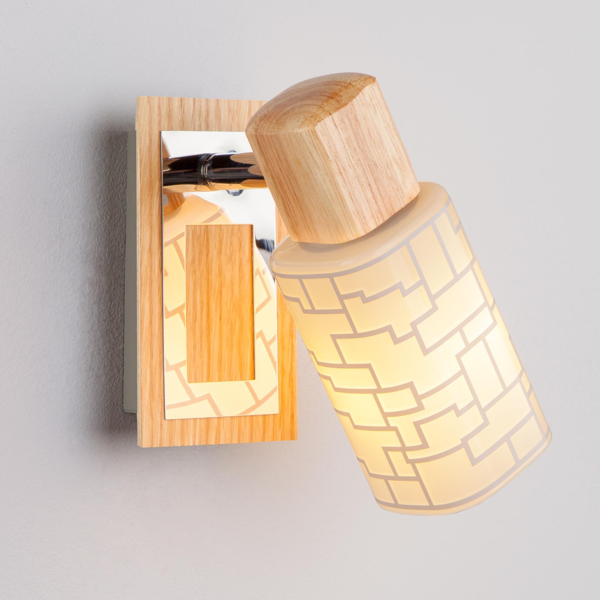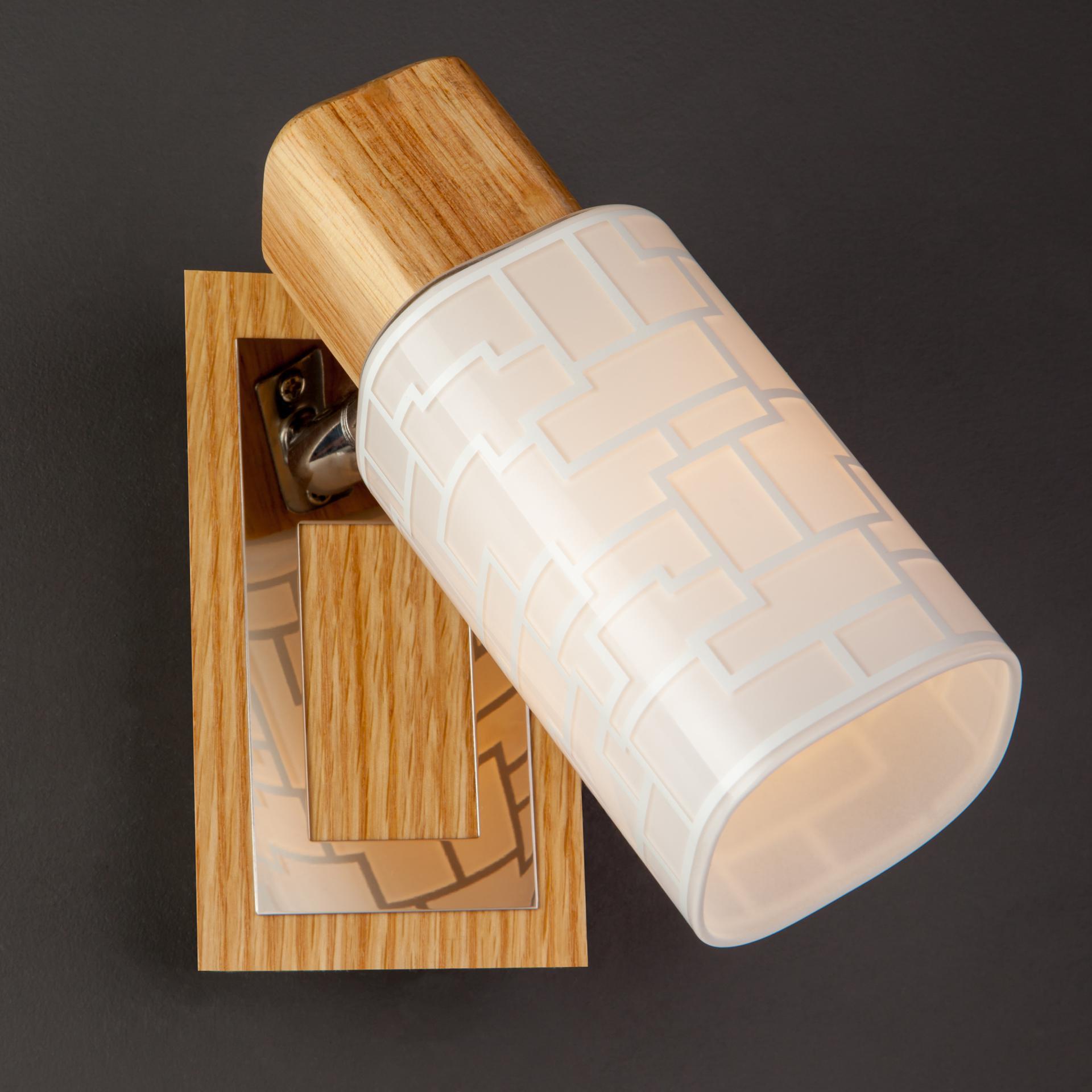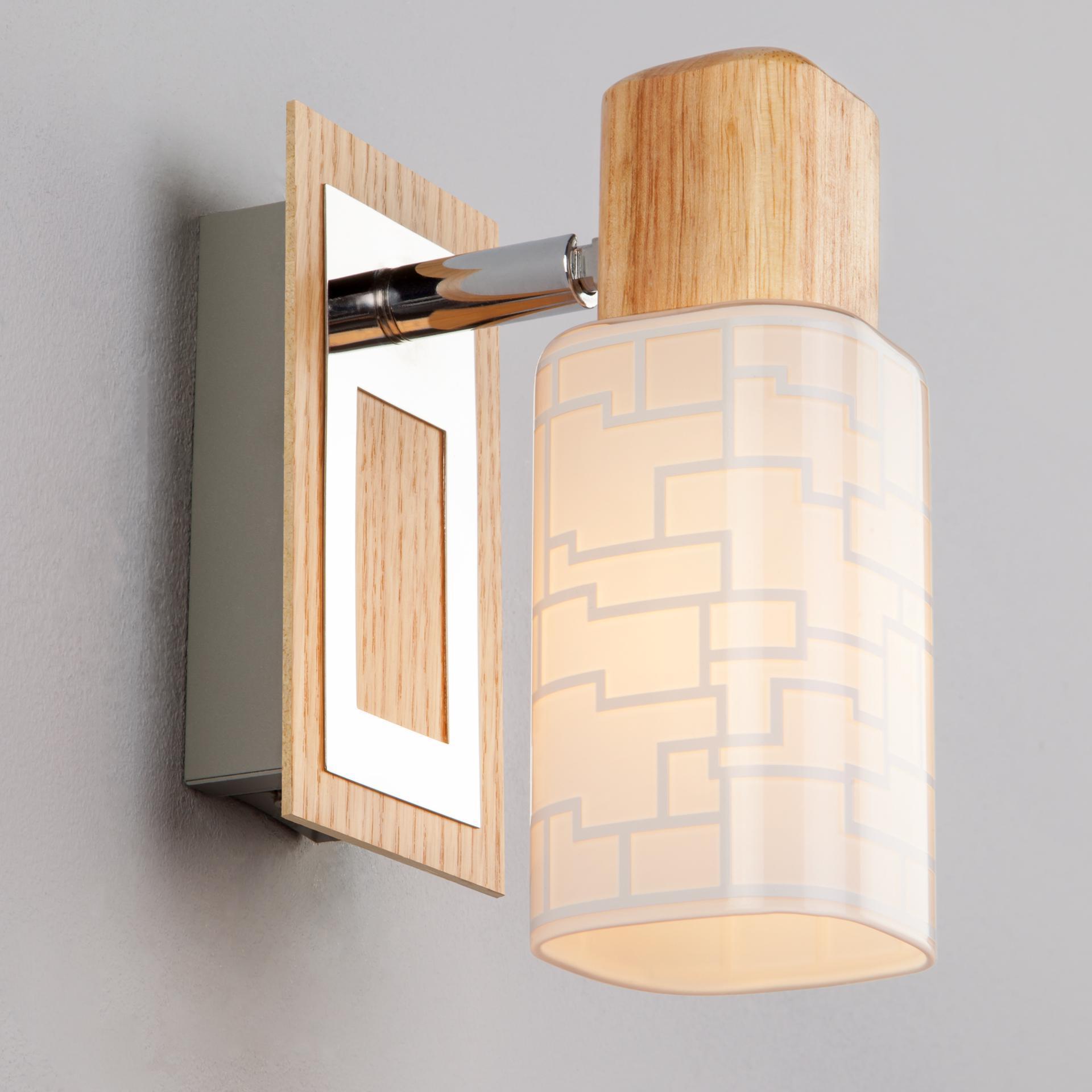 Настенный светильник с поворотным плафоном 20029/1 хром/светлое дерево создаст качественное дополнительное освещение и станет эффектным дополнением к основному источнику света. Благодаря декоративному стеклянному плафону бра создает мягкое равномерное свечение, подходящее для комфортного чтения книг в вечернее время. В качестве источника света используются сменные лампы типа "Свеча" или "Шар" с цоколем E14. Патрон рассчитан на максимальную мощность ламп накаливания 40 Вт. Корпус светильника выполнен из высококачественного и прочного дерева с надежным покрытием. Бра легко устанавливается при помощи крепежной планки, которая обеспечивает надежную фиксацию светильника на стене. В интернет-магазине Минимир вы можете купить настенный светильник с доставкой по Москве, Санкт-Петербургу и России.