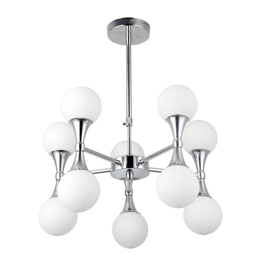 Исключительная модель A9162LM-10CC от итальянской компании Arte Lamp относится к коллекции 9162 и отлично подойдет для установки на потолок в гостиной, оформленной в стиле хай-тек. Подвесная люстра Arte Lamp A9162LM-10CC с круглыми плафонами осветит помещение площадью 41.3 кв. м. Производитель Arte Lamp рекомендует использовать для устройства галогеновые лампы с цоколем G9 и мощностью 33 W. Прибор произведен с использованием материалов: стекло и металл и может использоваться для натяжного потолка. Основным цветом товара является белый и хромовый. Торопитесь сделать заказ в интернет-магазине SvetONe.