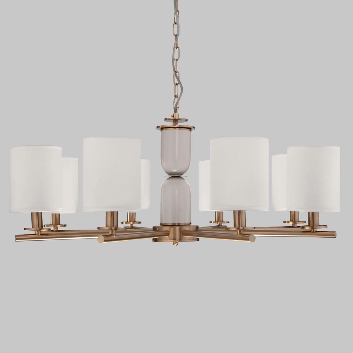 Невероятная модель 60146/8 латунь от российской компании Eurosvet относится к коллекции Caprera и отлично подойдет для установки на потолок в гостиной, оформленной в классическом стиле. Подвесная люстра Eurosvet Caprera 60146/8 латунь с цилиндрическими плафонами осветит помещение площадью 14 кв. м. Производитель Eurosvet рекомендует использовать для устройства лампы накаливания с цоколем E14 и мощностью 40 W. Прибор произведен с использованием материалов: текстиль, металл и ткань и может использоваться для натяжного потолка. Основным цветом товара является латунный и бежевый. Подвесная люстра 60146/8 латунь продается по цене 37900 руб. Торопитесь сделать заказ в интернет-магазине SvetONe.