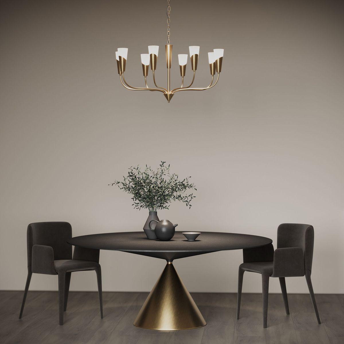 Невероятная модель a068281 от российской компании Eurosvet относится к коллекции Rhyton. Подвесная люстра Eurosvet Rhyton 60167/8 латунь с плафонами-конусами осветит помещение площадью 15 кв. м. Производитель Eurosvet рекомендует использовать для устройства лампы накаливания с цоколем E14 и мощностью 60 W. Прибор произведен с использованием материалов: стекло и металл и может использоваться для натяжного потолка. Основным цветом товара является белый и латунный. Подвесная люстра 60167/8 латунь продается по цене 28500 руб. Торопитесь сделать заказ в интернет-магазине SvetONe.