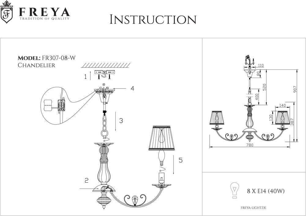 Великолепная модель FR2307-PL-08-WG от немецкой компании Freya относится к коллекции Bianchi и отлично подойдет для установки на потолок в гостиной, оформленной в стиле прованс. Подвесная люстра Freya Bianchi FR2307-PL-08-WG с конусными плафонами осветит помещение площадью 17.8 кв. м. Производитель Freya рекомендует использовать для устройства лампы накаливания с цоколем E14 и мощностью 40 W. Прибор произведен с использованием материалов: текстиль, металл и органза и может использоваться для натяжного потолка. Основным цветом товара является белый. Торопитесь сделать заказ в интернет-магазине SvetONe.