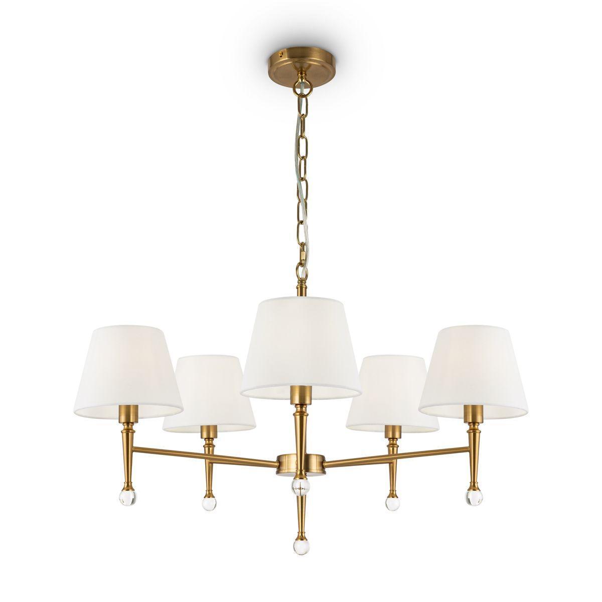 Незаурядная модель FR5190PL-05BS2 от немецкой компании Freya относится к коллекции Rosemary и отлично подойдет для установки на потолок спальни, оформленной в американском стиле. Подвесная люстра Freya Rosemary FR5190PL-05BS2 с плафонами-конусами осветит помещение площадью 13.3 кв. м. Производитель Freya рекомендует использовать для устройства лампы накаливания с цоколем E14 и мощностью 40 W. Прибор произведен с использованием материалов: текстиль, металл и ткань и может использоваться для натяжного потолка. Основным цветом товара является белый и латунный. Подвесная люстра FR5190PL-05BS2 продается по цене 14990 руб. Торопитесь сделать заказ в интернет-магазине SvetONe.