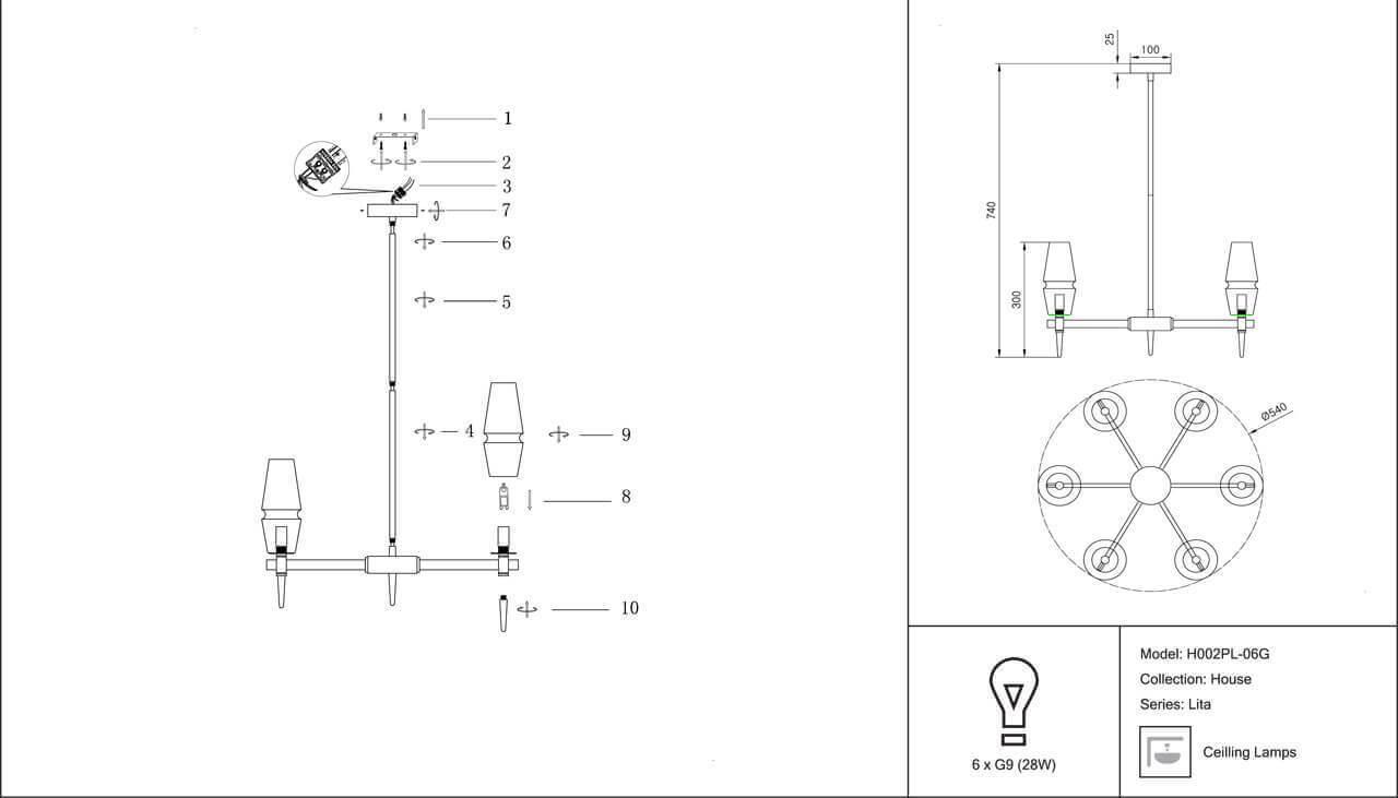Подвесная люстра Maytoni Lita H002PL-06G