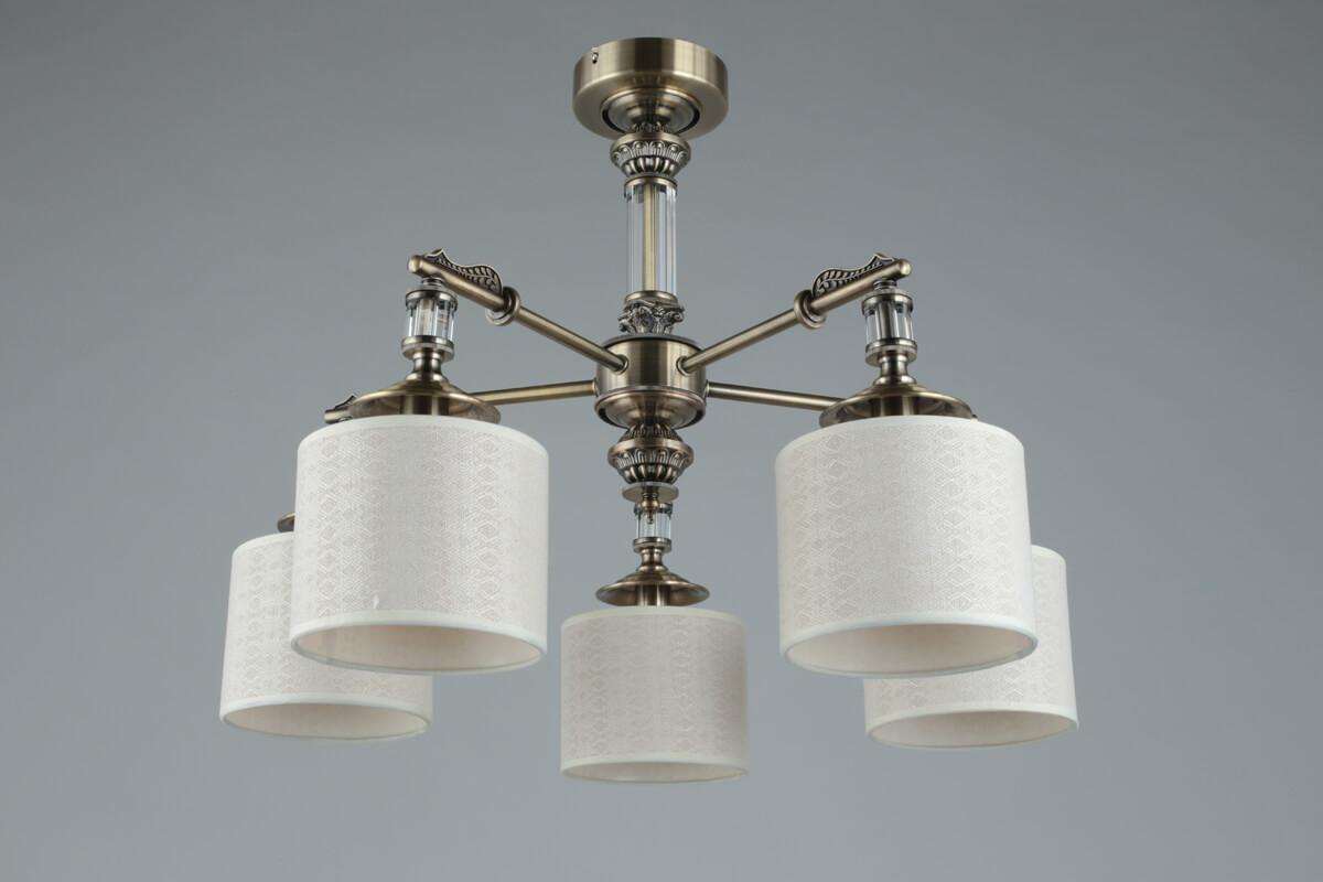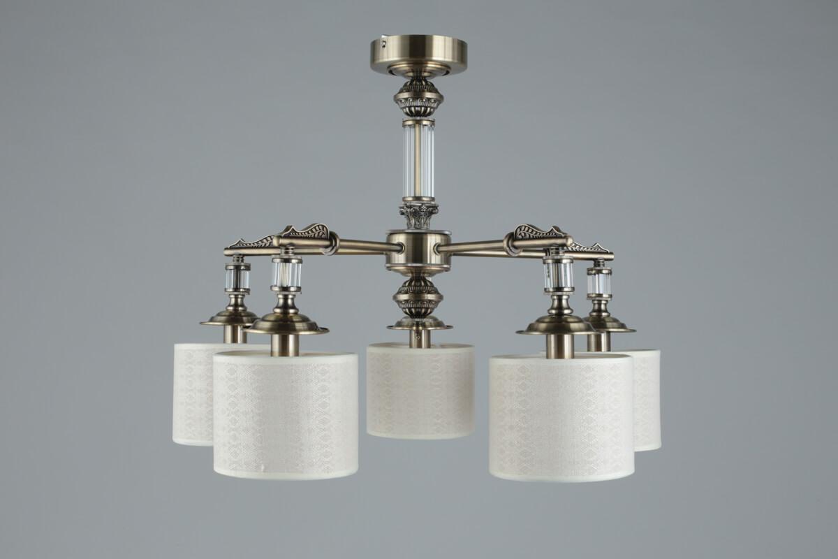 Изысканная модель OML-64307-05 от китайской компании Omnilux относится к коллекции Rovigo и отлично подойдет для установки на потолок спальни, оформленной в классическом стиле. Подвесная люстра Omnilux Rovigo OML-64307-05 с цилиндрическими плафонами осветит помещение площадью 12 кв. м. Производитель Omnilux рекомендует использовать для устройства лампы накаливания с цоколем E14 и мощностью 40 W. Прибор произведен с использованием материалов: текстиль, металл и ткань и может использоваться для натяжного потолка. Основным цветом товара является кремовый и бронзовый. Подвесная люстра OML-64307-05 продается по цене 15080 руб. Торопитесь сделать заказ в интернет-магазине SvetONe.