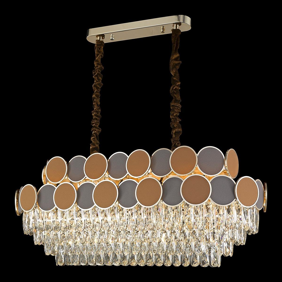Изысканная модель WE145.14.303 от немецкой компании Wertmark относится к коллекции Oriana и отлично подойдет для установки на потолок в гостиной, оформленной в стиле модерн. Подвесная люстра Wertmark Oriana WE145.14.303 с овальными плафонами осветит помещение площадью 31.1 кв. м. Производитель Wertmark рекомендует использовать для устройства лампы накаливания с цоколем E14 и мощностью 40 W. Прибор произведен с использованием материалов: хрусталь, металл и кожа и может использоваться для натяжного потолка. Основным цветом товара является коричневый, золотой и прозрачный. Подвесная люстра WE145.14.303 продается по цене 75550 руб, с дисконтом 41% - ваша выгода при покупке составит 53395 руб. Торопитесь сделать заказ в интернет-магазине SvetONe.