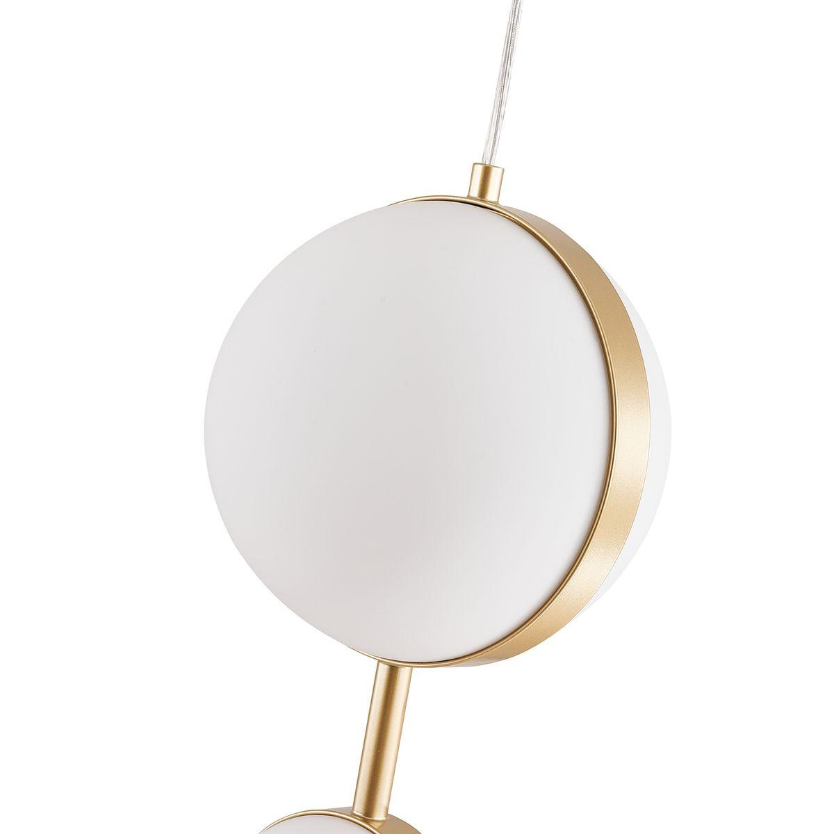 Изумительная модель 4448-2P от немецкой компании Favourite относится к коллекции Asterismo. Подвесной светодиодный светильник Favourite Asterismo 4448-2P с плафонами в виде шаров осветит помещение площадью 5 кв. м. холодным светом. Осветительный элемент встроен в конструкцию и не требует приобретения дополнительных лампочек. Прибор произведен с использованием материалов: стекло и металл и может использоваться для натяжного потолка. Основным цветом товара является опаловый и золотой. Подвесной светодиодный светильник 4448-2P продается по цене 24900 руб. Торопитесь сделать заказ в интернет-магазине SvetONe.