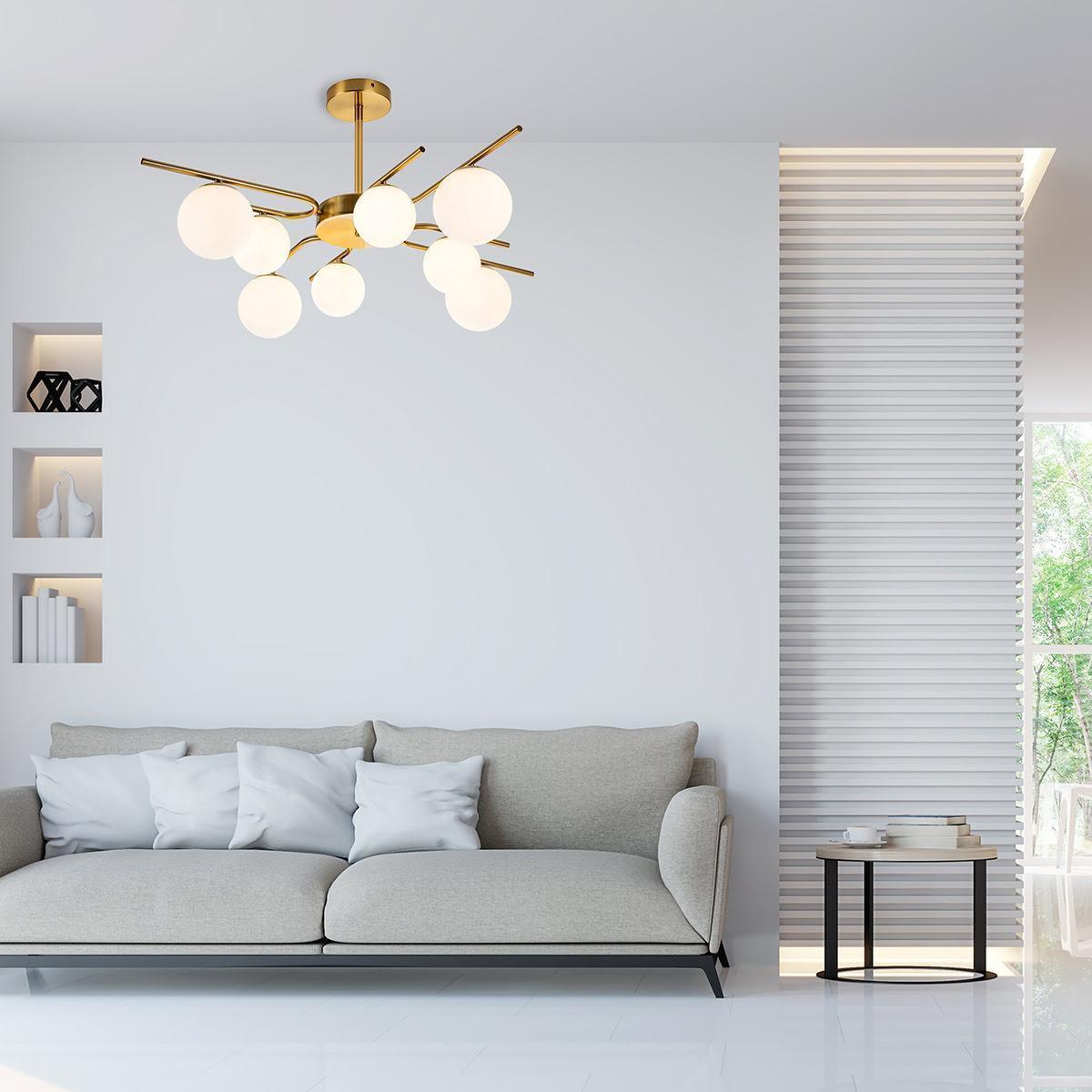Незаурядная модель 642/8P Brass от английской компании Escada относится к коллекции Sphere и отлично подойдет для установки на потолок в гостиной, оформленной в стиле модерн. Потолочная люстра Escada Sphere 642/8P Brass с плафонами в виде шаров осветит помещение площадью 30 кв. м. Производитель Escada рекомендует использовать для устройства галогеновые лампы с цоколем G9 и мощностью 40 W. Прибор произведен с использованием материалов: металл и стекло и может использоваться для натяжного потолка. Основным цветом товара является бронзовый и белый. Потолочная люстра 642/8P Brass продается по цене 17170 руб. Торопитесь сделать заказ в интернет-магазине SvetONe.
