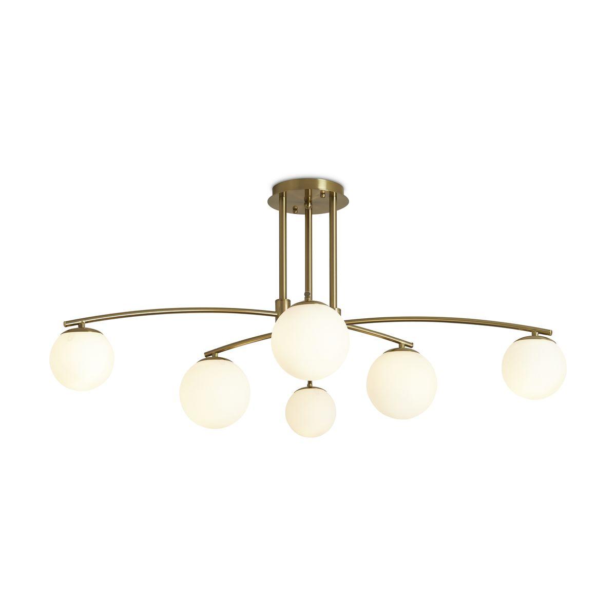 Утонченная модель FR5443CL-06BS от немецкой компании Freya относится к коллекции Hanger и отлично подойдет для установки на потолок в гостиной, оформленной в стиле модерн. Потолочная люстра Freya Hanger FR5443CL-06BS с плафонами в виде шаров осветит помещение площадью 24 кв. м. Производитель Freya рекомендует использовать для устройства лампы накаливания с цоколем E14 и мощностью 60 W. Прибор произведен с использованием материалов: стекло и металл и может использоваться для натяжного потолка. Основным цветом товара является белый и латунный. Потолочная люстра FR5443CL-06BS продается по цене 27390 руб. Торопитесь сделать заказ в интернет-магазине SvetONe.