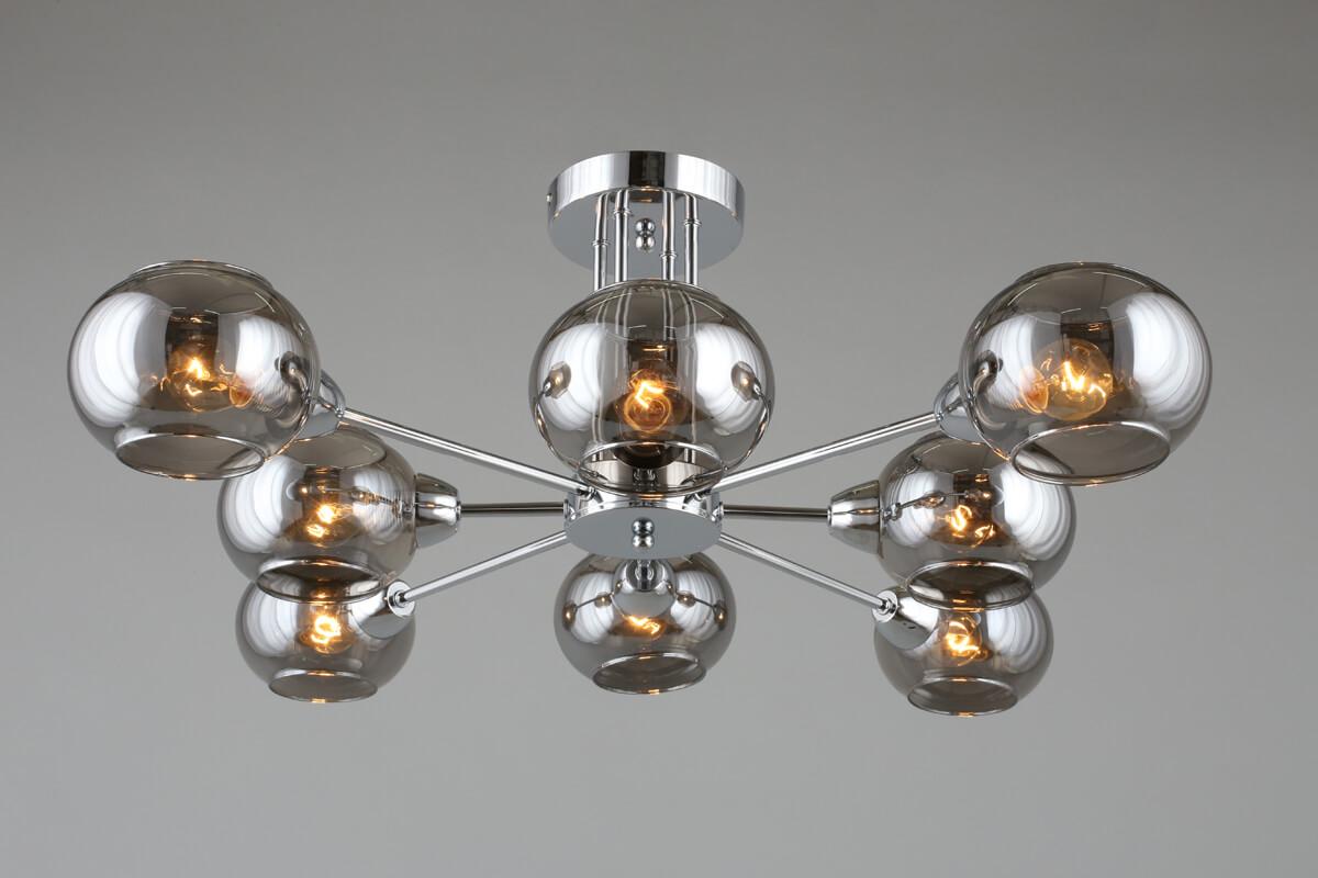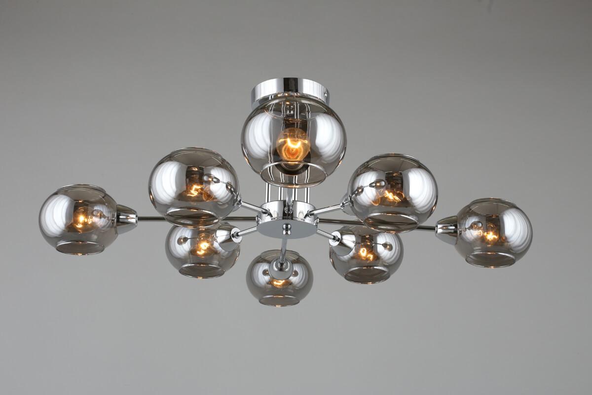 Изумительная модель OML-93807-08 от китайской компании Omnilux относится к коллекции Marsala и отлично подойдет для установки на низкий потолок в гостиной, оформленной в стиле лофт. Потолочная люстра Omnilux Marsala OML-93807-08 с круглыми плафонами осветит помещение площадью 16 кв. м. Производитель Omnilux рекомендует использовать для устройства лампы накаливания с цоколем E14 и мощностью 40 W. Прибор произведен с использованием материалов: стекло и металл и может использоваться для натяжного потолка. Основным цветом товара является дымчатый и хромовый. Потолочная люстра OML-93807-08 продается по цене 13090 руб. Торопитесь сделать заказ в интернет-магазине SvetONe.