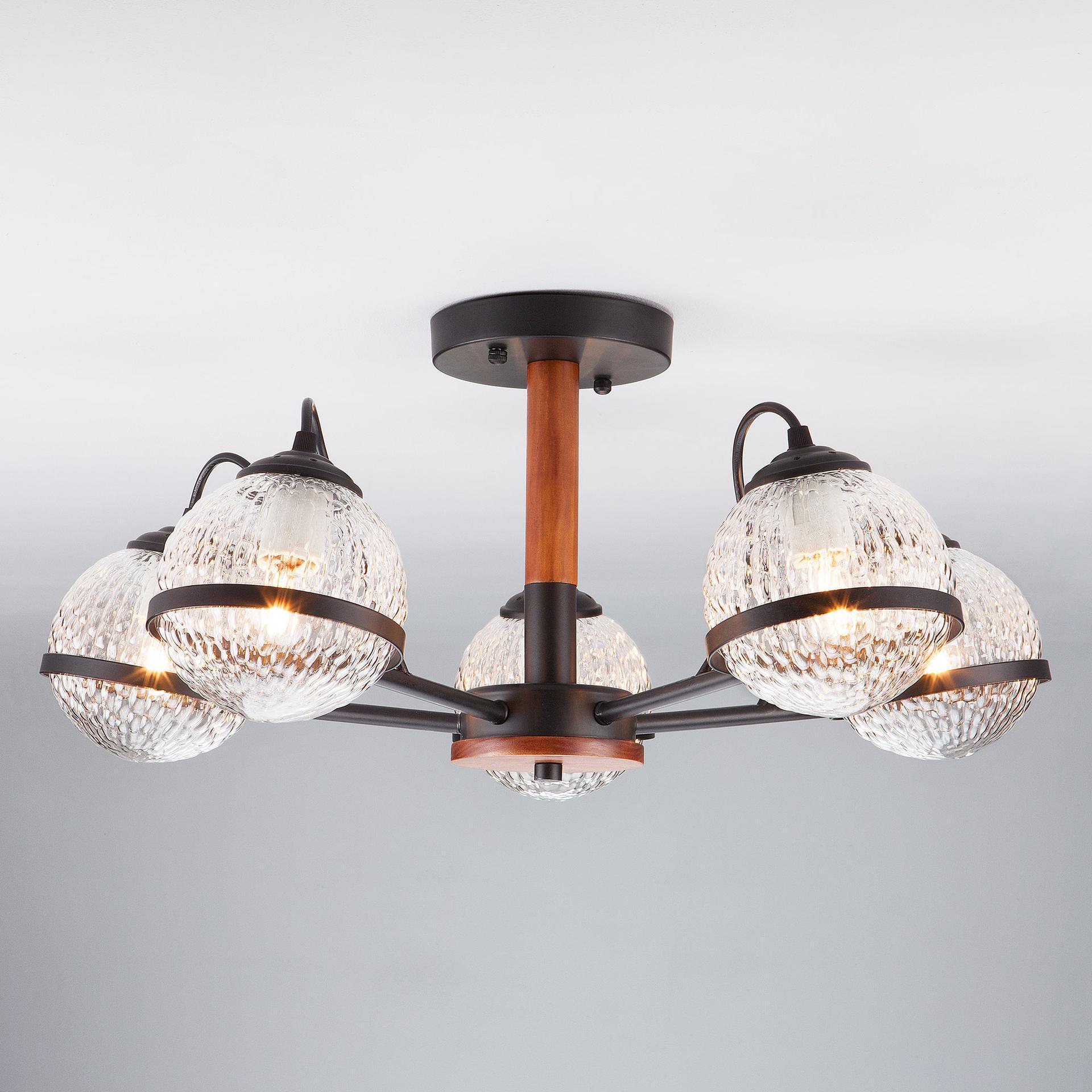 Украсить ваше потолочное пространство и создать качественное освещение на площади 24 м кв. поможет стильная люстра в стиле loft. Дизайн серии «Livia» выполнен в ультрамодном стиле промышленного дизайна. Необычные закрытые плафоны в форме шара, украшенные декоративным проводом, обеспечивают мягкое свечение. Комбинация брутального корпуса и декора, имитирующего дерево, идеальна для интерьеров различной стилистики. В пятирожковой люстре используются сменные лампы с цоколем E27, рассчитанные на максимальную мощность 60 Вт. Потолочный светильник оснащен стеклянными плафонами равномерно распределяющими свет в помещении. В производстве светильника использован высококачественный металл с надежным защитным покрытием и закаленное стекло. Наш интернет-магазин предлагает недорого купить потолочную люстру с бесплатной доставкой по Москве и России.