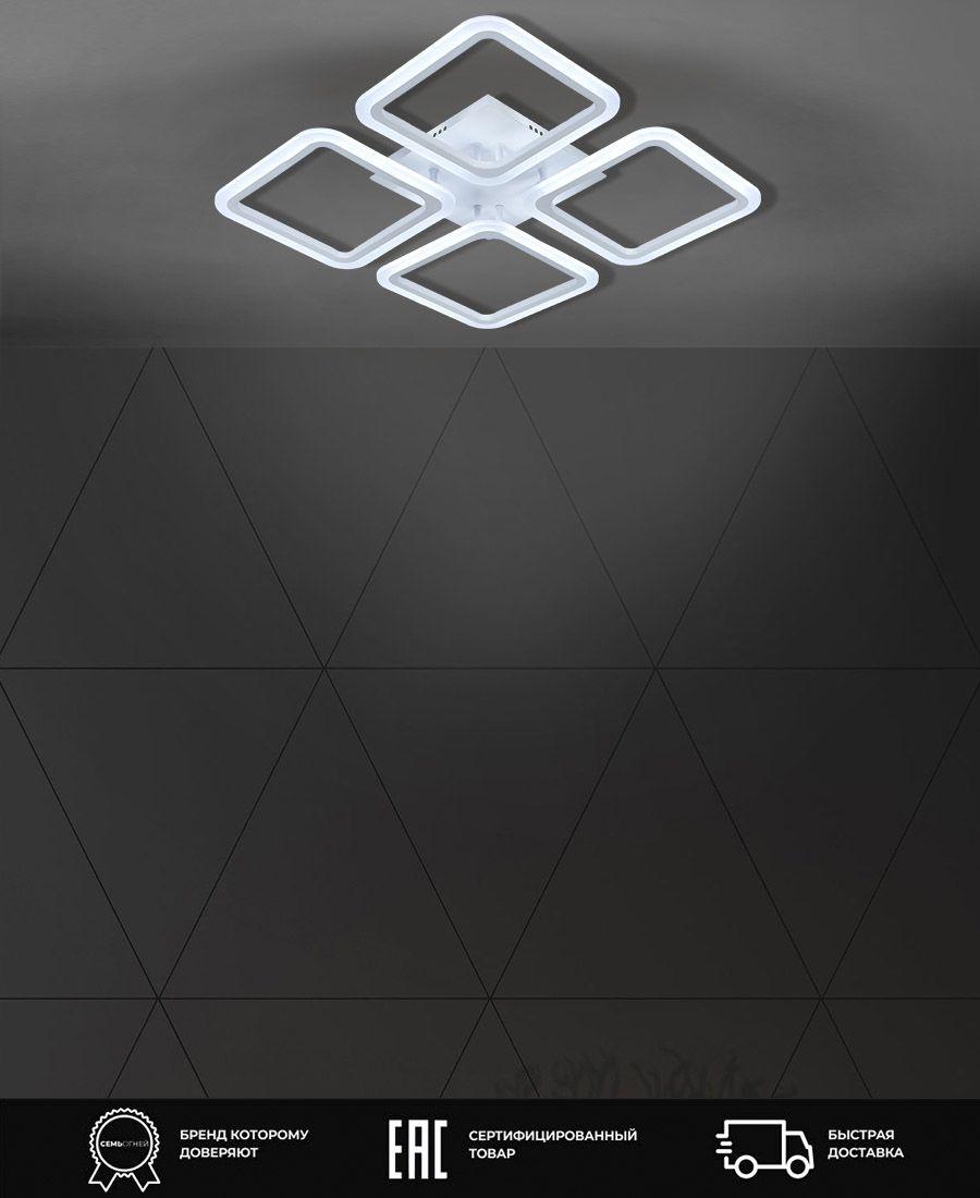 Особенная модель SF5041/4C-WT от российской компании Seven Fires относится к коллекции Barna и отлично подойдет для установки на низкий потолок спальни, оформленной в стиле хай-тек. Потолочная светодиодная люстра Seven Fires Barna SF5041/4C-WT с квадратными плафонами осветит помещение площадью 20 кв. м. холодным светом. Осветительный элемент встроен в конструкцию и не требует приобретения дополнительных лампочек. Прибор произведен с использованием материалов: акрил и металл и может использоваться для натяжного потолка. В комплект поставки входит пульт дистанционного управления. Основным цветом товара является белый. Потолочная светодиодная люстра SF5041/4C-WT с диммером продается по цене 3340 руб. Торопитесь сделать заказ в интернет-магазине SvetONe.
