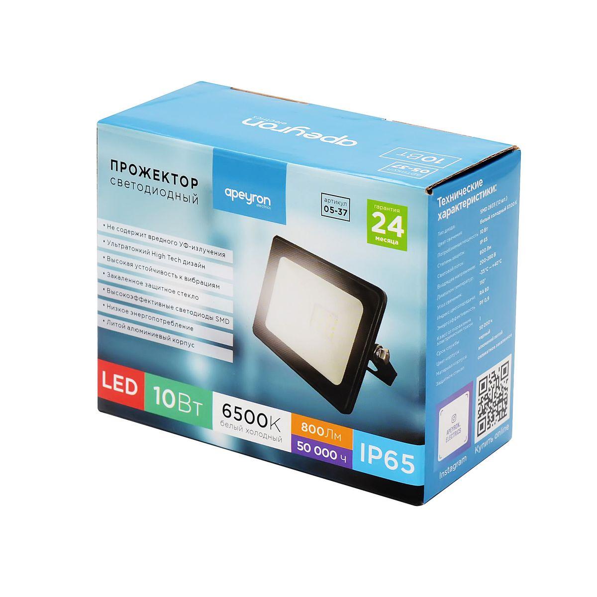 Прожектор светодиодный Apeyron 10W 6500K 05-37