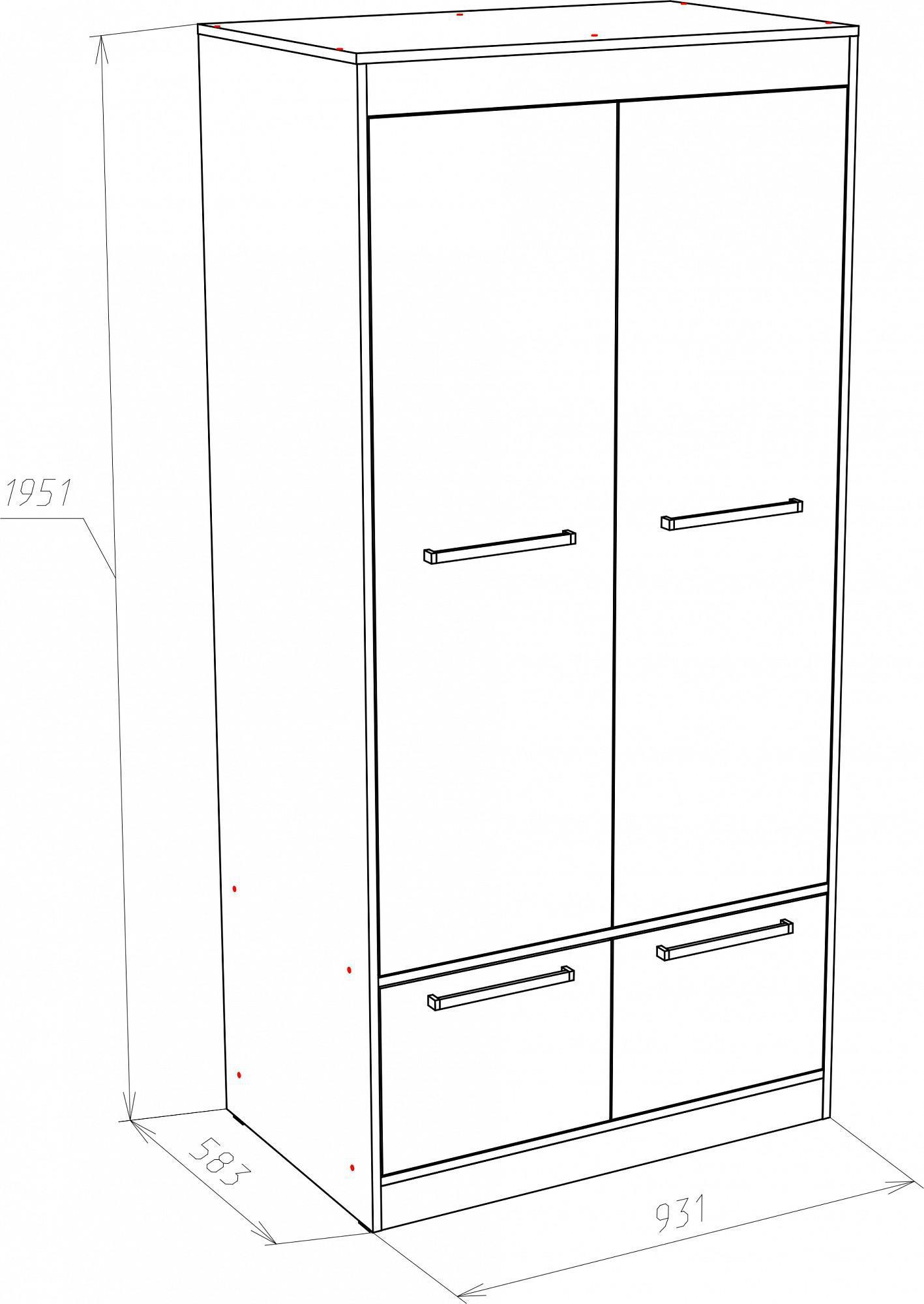 2 полки, 2 штанги для вешалок, 4 дверцы