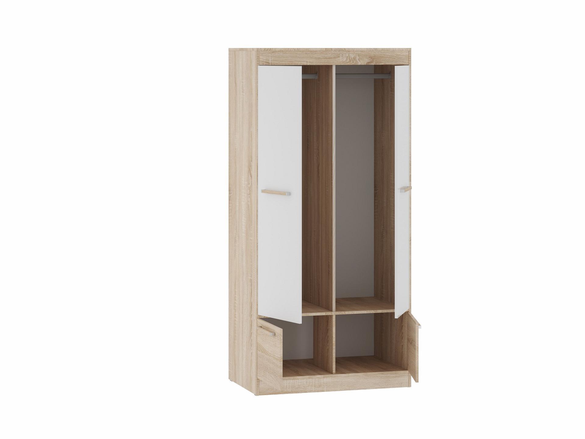 Ищете практичную и изысканную мебель для дома? Шкаф платяной Оксфорд ШК-2 из коллекции «Оксфорд» – то, что вам нужно. в следующей комплектации: 2 полки, 2 штанги для вешалок, 4 дверцы. ЛДСП Е1, из которого сделан фасад, имеет качественное верхнее покрытие (оттенок «белый, дуб сонома»), оптимальное для размещения в помещениях с высокой проходимостью, а компактные размеры изделия позволят выигрышно использовать полезное пространство (шкаф шириной 930 мм и глубиной 580 мм, при этом вы сможете разложить в нем все необходимое благодаря внушительной высоте, равной 1950 мм).