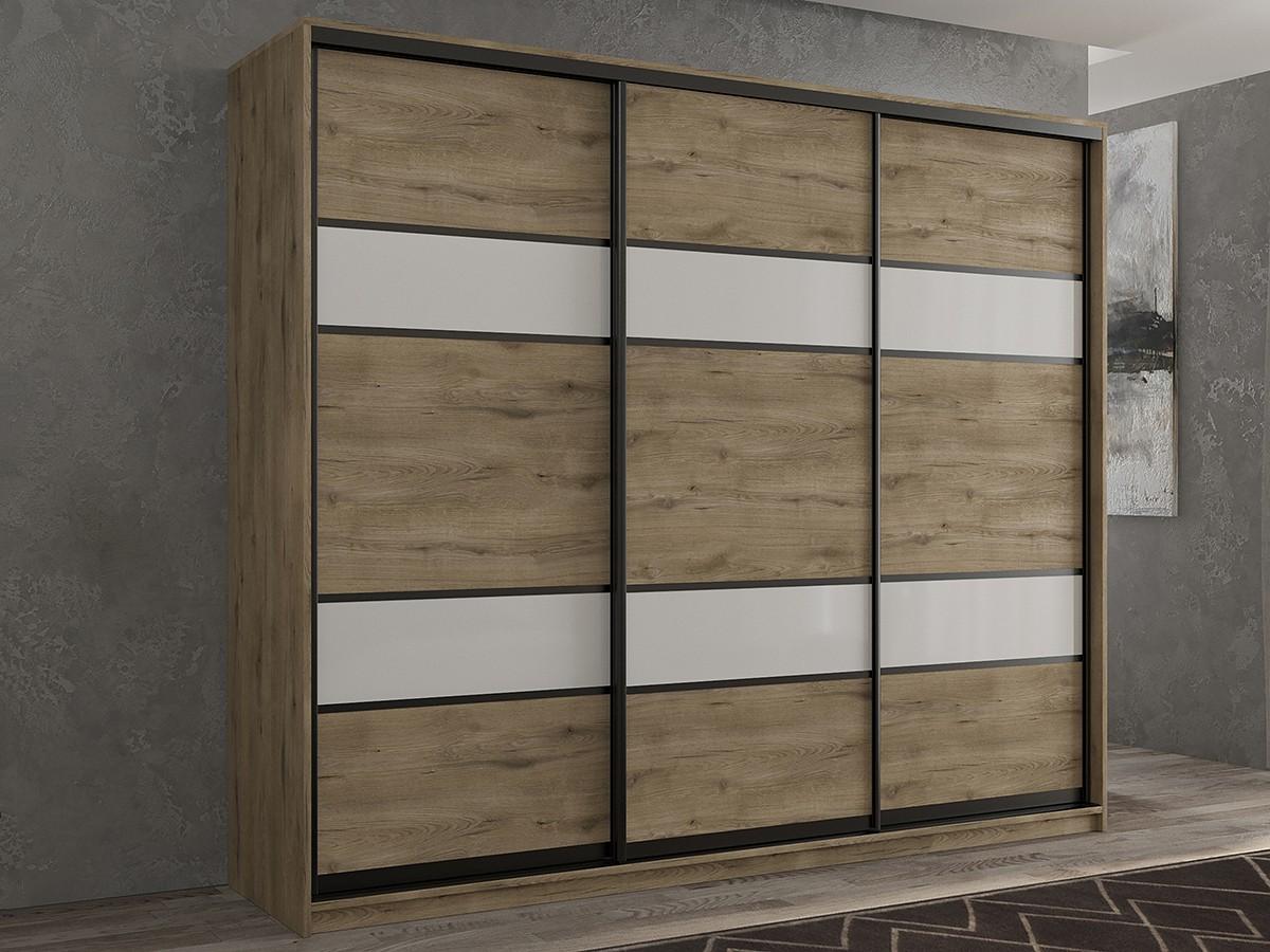 Шкафы-купе 3-х дверный Кааппи 8 белый, дуб эвок прибрежный