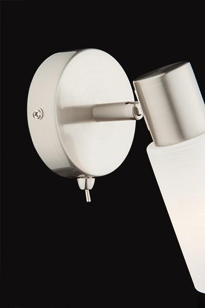 Спот с плафоном из матового стекла 20043/1 сатин-никель создаст качественное дополнительное освещение и станет эффектным дополнением к основному источнику света. Благодаря декоративному стеклянному плафону бра создает мягкое равномерное свечение, подходящее для комфортного чтения книг в вечернее время. В качестве источника света используются сменные лампы типа "Свеча" или "Шар" с цоколем E14. Патрон рассчитан на максимальную мощность ламп накаливания 40 Вт. Корпус светильника выполнен из высококачественного и прочного металла с надежным покрытием. Бра легко устанавливается при помощи крепежной планки, которая обеспечивает надежную фиксацию светильника на стене. В интернет-магазине Минимир вы можете купить настенный светильник с доставкой по Москве, Санкт-Петербургу и России.