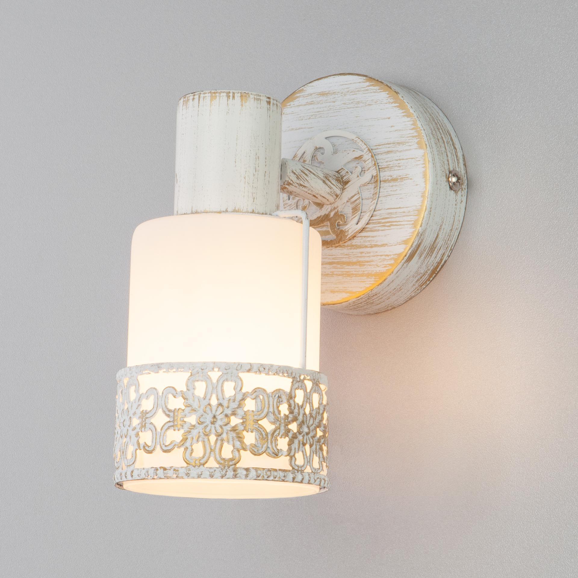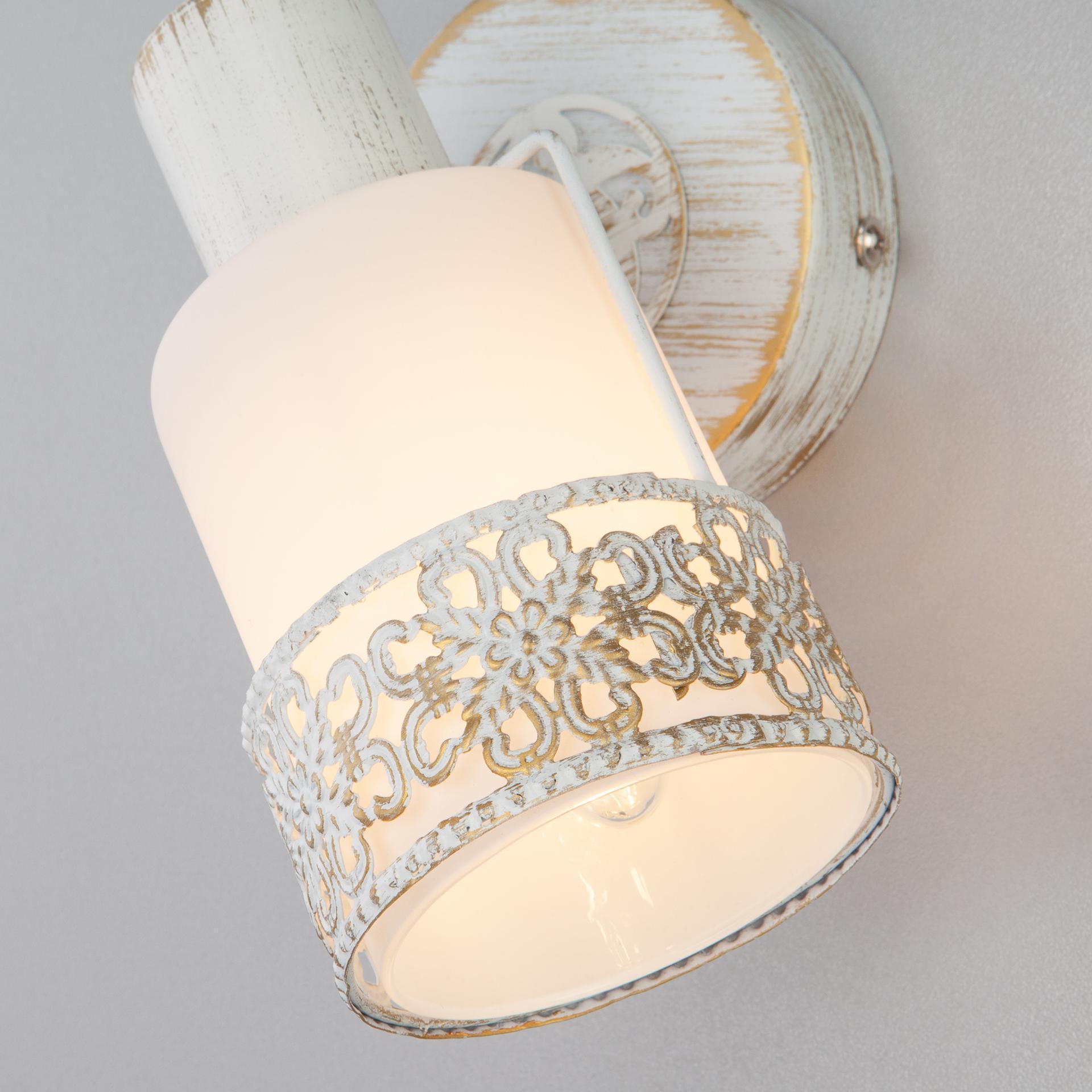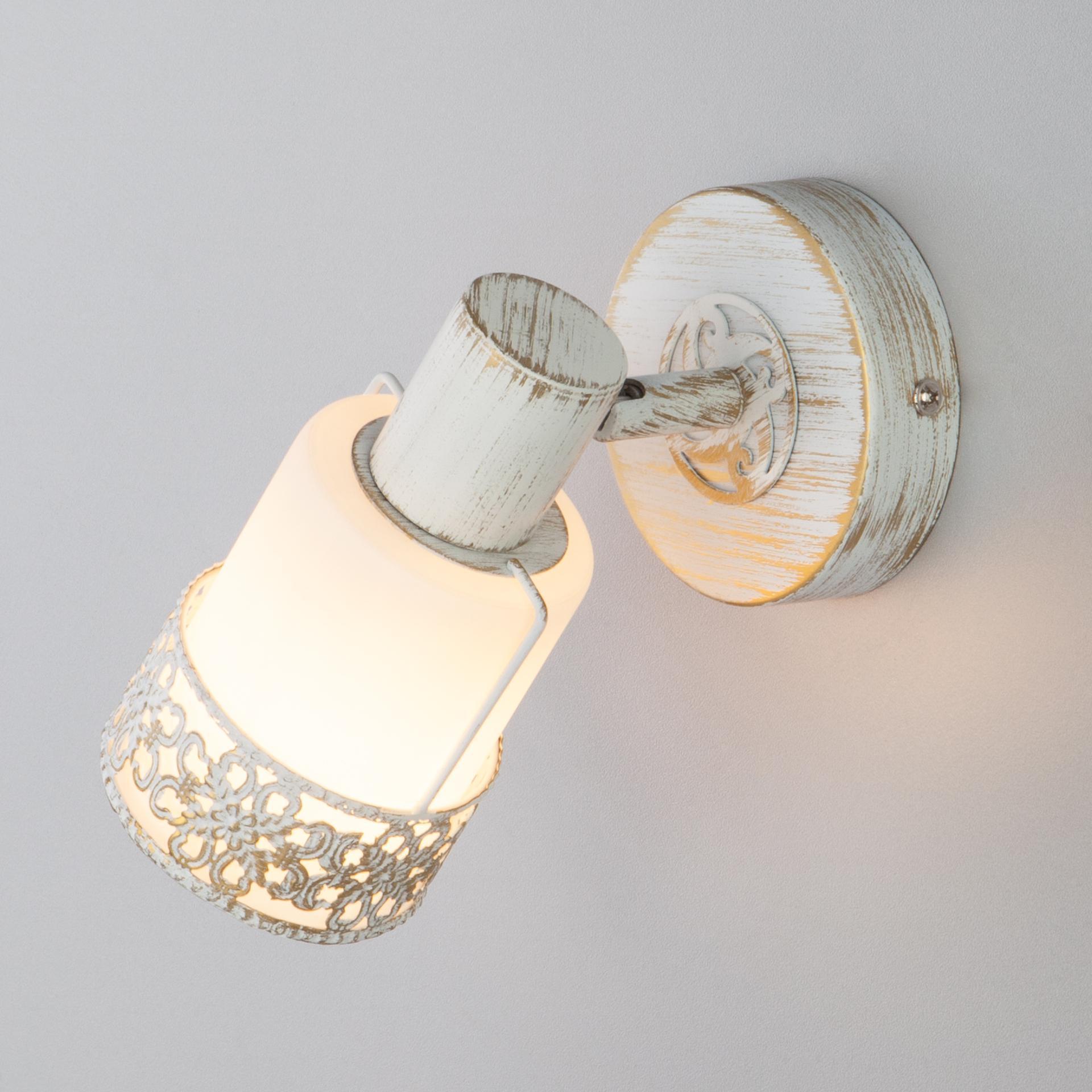 Спот с поворотным плафоном 20025/1 белый с золотом создаст качественное дополнительное освещение и станет эффектным дополнением к основному источнику света. Благодаря декоративному стеклянному плафону бра создает мягкое равномерное свечение, подходящее для комфортного чтения книг в вечернее время. В качестве источника света используются сменные лампы типа "Свеча" или "Шар" с цоколем E14. Патрон рассчитан на максимальную мощность ламп накаливания 40 Вт. Корпус светильника выполнен из высококачественного и прочного металла с надежным покрытием. Бра легко устанавливается при помощи крепежной планки, которая обеспечивает надежную фиксацию светильника на стене. В интернет-магазине Минимир вы можете купить настенный светильник с доставкой по Москве, Санкт-Петербургу и России.