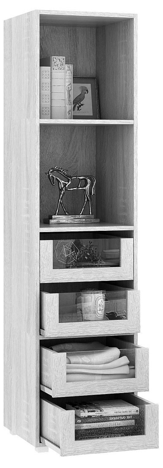 У вас много литературы или вы хотите интересно обыграть интерьер, украсив его оригинальным декором? Прекрасным решением будет MAS_STE-PRAIM-41-4-DM - стеллаж комбинированный Прайм-41-4, разработанный специалистами компании МФ Мастер в рамках коллекции «Прайм-41-4». Благодаря оптимальной форме, он займет совсем немного места, при этом в него поместится все необходимое (ширина стеллажа 370 мм, высота 1454 мм, глубина 420 мм). Стеллаж выполнен из современных материалов (ЛДСП Е1) и имеет матовый, прозрачный корпус выигрышного оттенка (дуб молочный). Производитель предлагает за цену 9599 руб. стеллаж, в комплекте с которым идут 4 ящика.