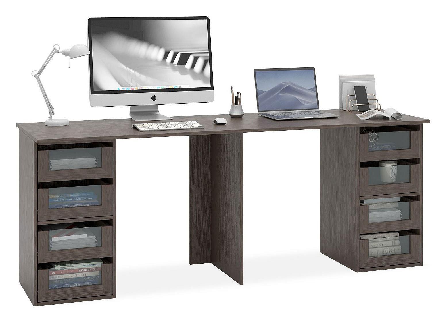 Работа или развлечения – Стол письменный Прайм-89 MAS_STL-PRAIM-89-VM, созданный брендом 2735035, отлично подойдет для реализации любых задач. Эта модель входит в серию «Прайм-89» и адаптирован под нужды каждого члена семьи. Благодаря оптимальным размерам изделия (Х1996Х740 мм) вы сможете с комфортом заниматься любимыми и важными делами. Базовая комплектация включает в себя непосредственно письменный стол, тумбочка: 4 ящика,, тумбочка: 4 ящика. Для изготовления корпуса был выбран ЛДСП Е1 в оттенке венге, завершает дизайн матовый верхний слой, гармонично сочетающийся со столешницей. Приобрести данную модель вы можете по привлекательной цене, равной 17998 руб.