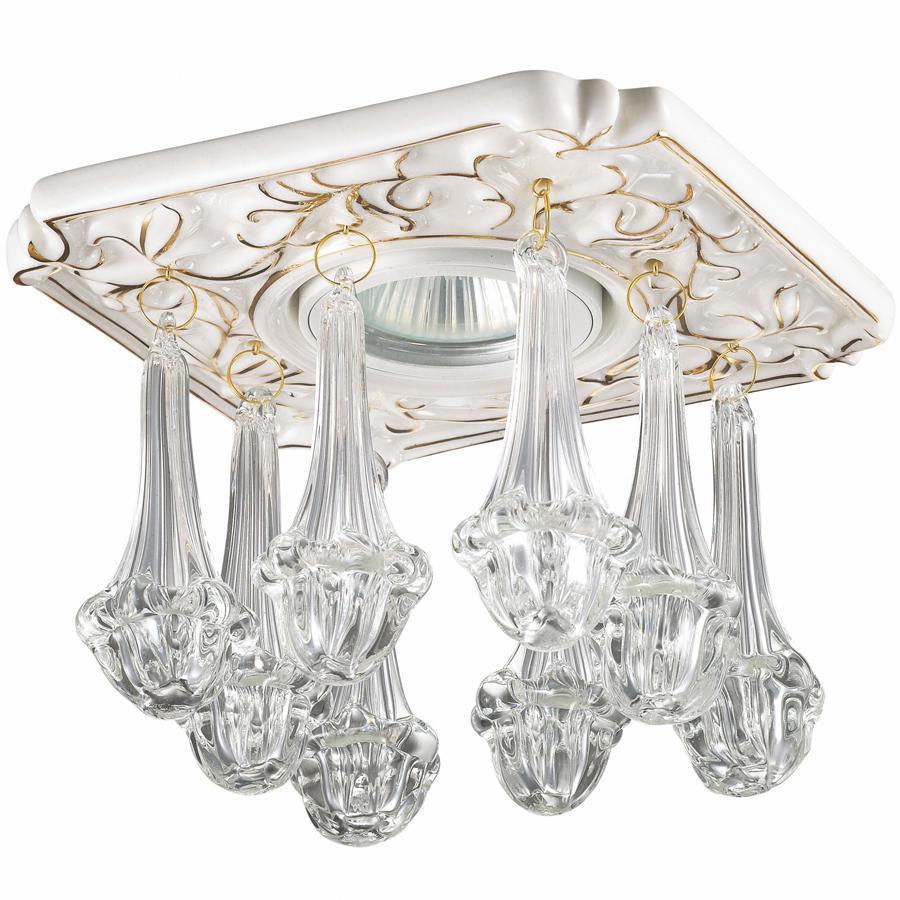 металлическое основание, фарфор, декоратвные подвески из прозрачного хрусталя