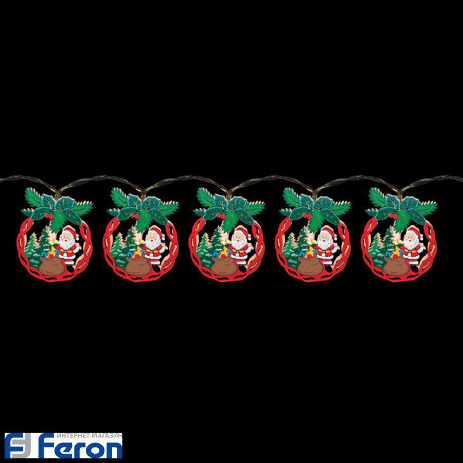 Светодиодная гирлянда "деревянные шары с сантой", cl121