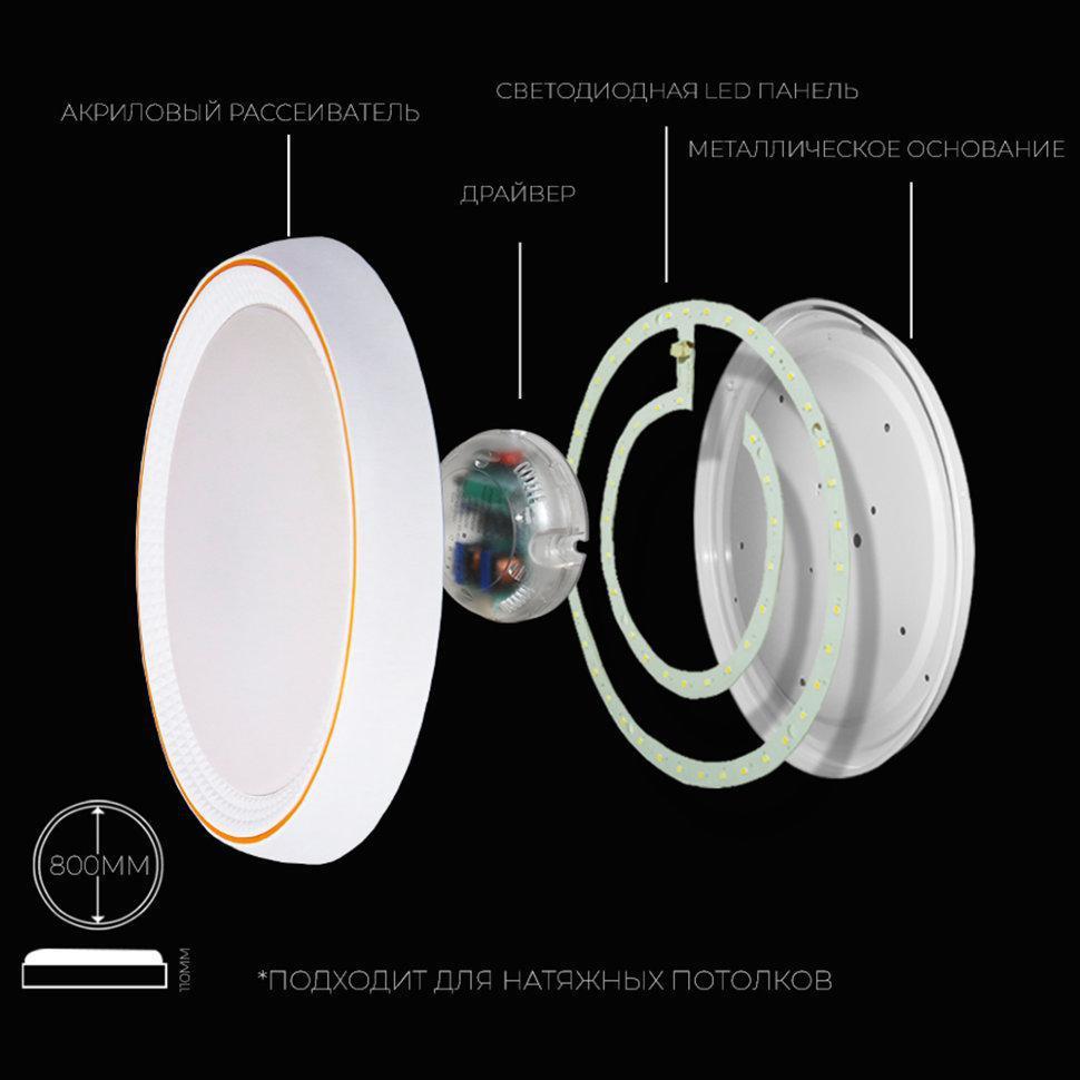 Потолочный светодиодный светильник "ЭЙРИ" отличается компактностью и стильным дизайном, управляется пультом со встроенным диммером, что позволяет регулировать яркость свечения и цвет свечения от холодного (6400 К) к теплому (4200 К). Степень защиты светильника IP20. Максимальная мощность 240 Вт, световой поток 23760 Лм. Диаметр светильника 800 мм, высота - 110 мм. Светильник "ЭЙРИ" идеально подойдет как для прихожей, кухни, спальни, гостиной, так и для детской комнаты, площадью до 60 кв.м., и прекрасно впишется в любой ваш интерьер. Возможно установить на потолке и на стене. Подходит для натяжных потолков. В комплект светильника входит пульт управления. Светодиодный светильник за счет яркого свечения и большого ассортимента цветов поможет воплотить ваши самые интересные идеи.