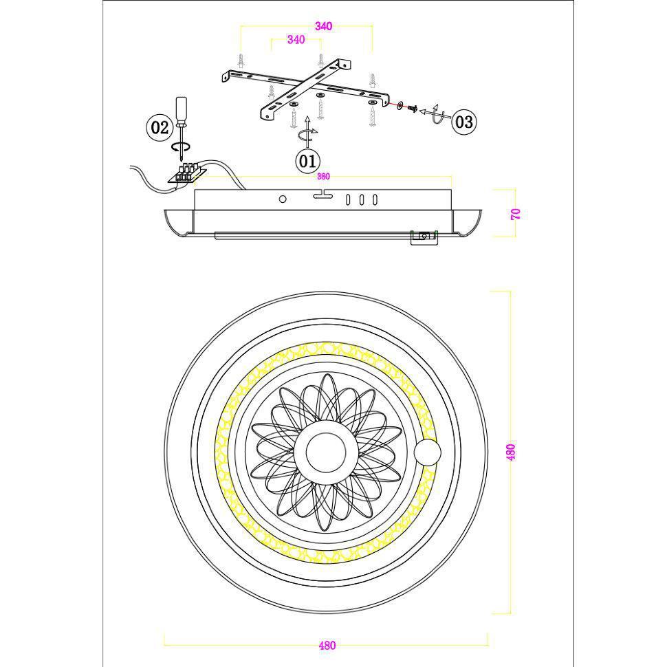 Семь Огней создает продукт от эскиза до готового шедевра. Над созданием светильников трудятся одни из лучших дизайнеров и конструкторов. Наша компания предъявляет высокие требования к производимой продукции, что подтверждено сертификатами качества.ПРЕИМУЩЕСТВАСовременный дизайнИзменение освещения: «теплый» свет (3000К), «дневной» свет (4500К), «холодный» свет (6000К)Управление функциями с помощью пульта ДУ или с помощью выключателяПоддержка технологии умного домаПульт ДУ с памятьюДлительный срок службы светильникаПРИМЕНЕНИЕПредназначен для основного освещения помещенийПодойдет в гостиную, зал, спальню, прихожуюКОНСТРУКЦИЯ И МАТЕРИАЛЫСветильник изготовлен из высококачественных материалов и является безопасным для человека, животных и окружающей средыИспользуемые материалы: металл, акрилИсточник света -светодиодыSMD матрица на основанииКрепление -накладным способом с помощью шуруповКрепеж подойдет под все виды потолков: бетон, гипсокартон, натяжные и деревянные потолки.