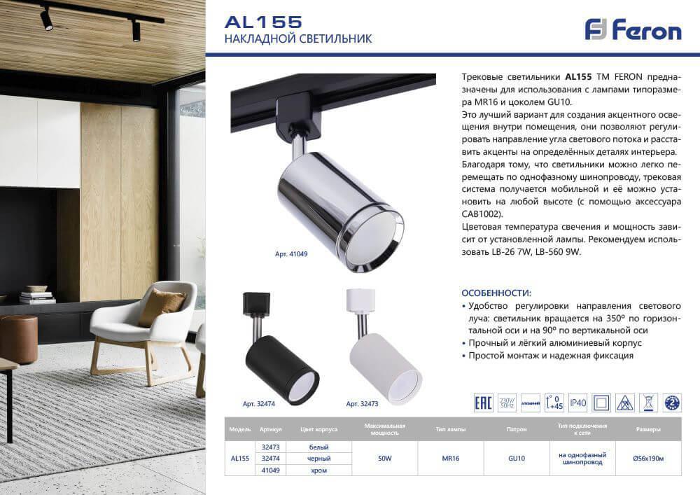 Трековый светильник Feron AL155 41049