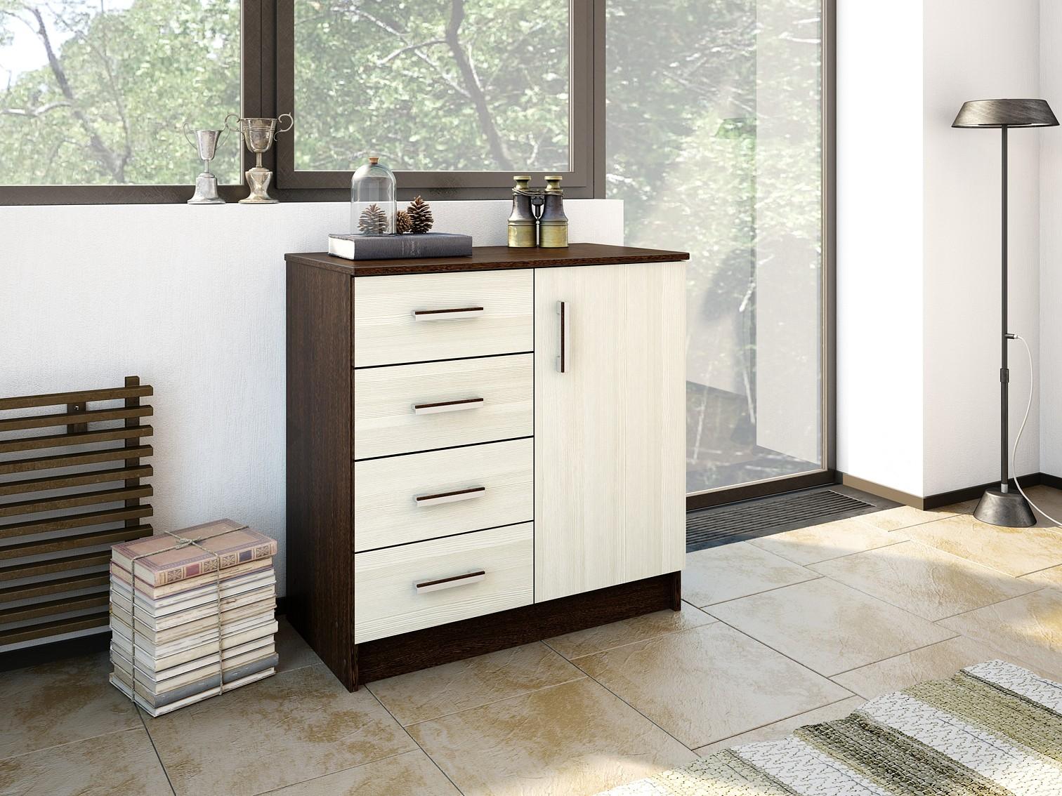 1 дверца, 1 полка, 4 ящика