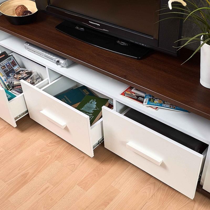 Когда все вещи лежат на своих местах – это залог красивого и аккуратного интерьера. Тем приятнее, когда зоной для хранения является вместительная и надежная тумба под ТВ Норвуд 3 GLZ_00-00014673. Эта модель изготовлена компанией Глазов-Мебель и входит в серию Норвуд. Матовый корпус изделия выполнен из износостойкого материала (ЛДСП Е1) и окрашен в благородный оттенок «белый, орех шоколадный». Тумба под ТВ Норвуд 3 стоит 6710 руб.