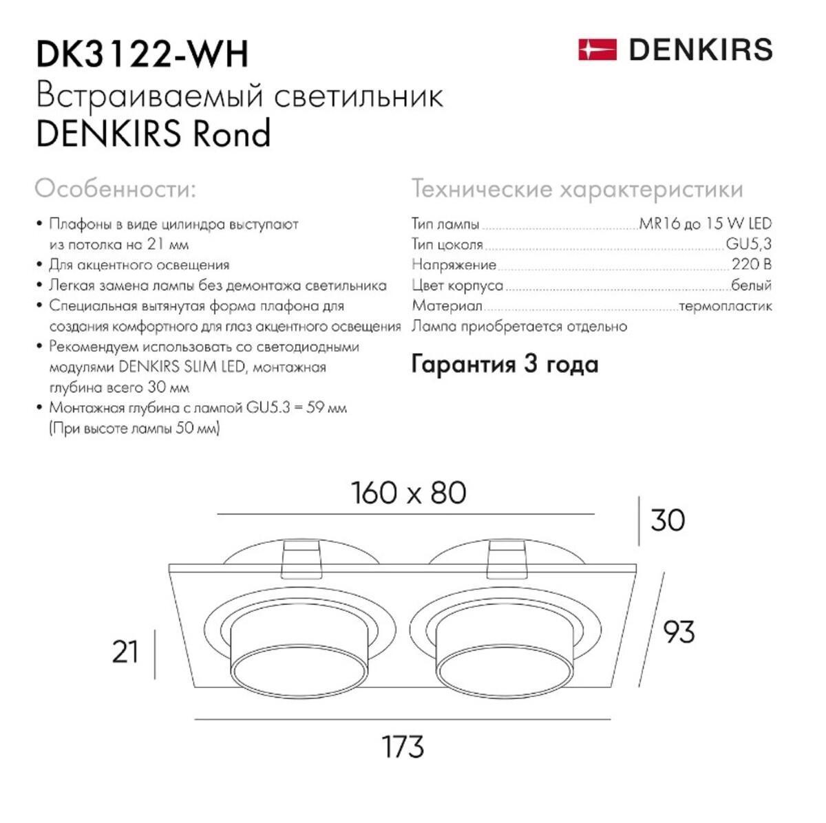 Встраиваемый светильник Denkirs Rond DK3122-WH