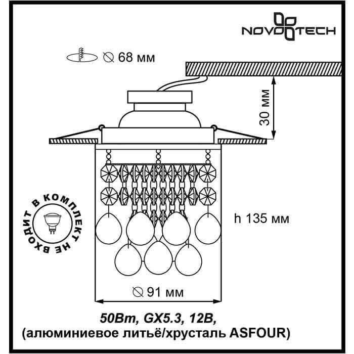 Изящная модель 369328 от венгерской компании Novotech относится к коллекции Spot и отлично подойдет для установки на потолок спальни, оформленной в стиле арт-деко. Встраиваемый светильник Novotech Drop 369328 с круглыми плафонами осветит помещение площадью 2.8 кв. м. Производитель Novotech рекомендует использовать для устройства галогеновые лампы с цоколем GX5.3 и мощностью 50 W. Прибор произведен с использованием материалов: хрусталь и металл и может использоваться для натяжного потолка. Основным цветом товара является хромовый и прозрачный. Торопитесь сделать заказ в интернет-магазине SvetONe.
